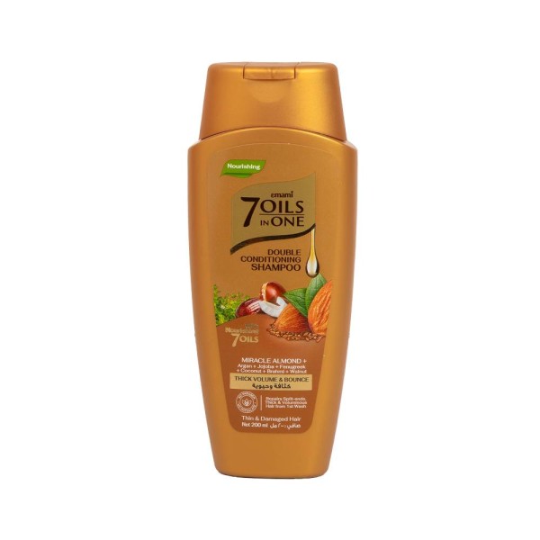 إيمامي – شامبو 7 زيوت في واحد للتغذية المزدوجة يغذي الشعر بعمق ويمنع فقدان البروتين - باللوز 400 مل | Emami 7 Oils in One Double Conditioning Shampoo – Miracle Almond 400ml